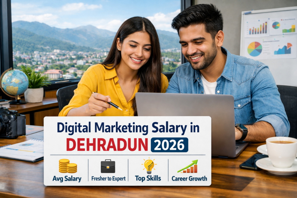 The average salary for digital marketing professionals in Dehradun ranges from ₹15,000 to ₹35,000 per month for freshers.